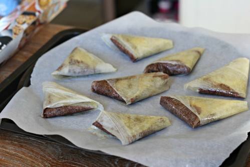 L’alliance chocolat – noix de coco – banane est délicieuse, un peu exotique mais surtout très gourmande ! A faire et refaire ! Ingrédients (pour 20 pièces) : Pour la farce : - 100 gr de beurre mou - 100 gr de sucre - 2 œufs - 100 gr de noix de coco râpée - 1 cuillère à soupe de farine - 30 gr de chocolat noir - 20 gr de cacao non sucré en poudre Pour le montage et la garniture : - 50 gr de beurre - 10 feuilles de brick - 2 bananes - 50 gr de sucre glace Préparation : -Dans un saladier, travailler le beurre à la cuillère en bois pour le ramollir et l'assouplir. Ajouter le sucre en poudre et mélanger jusqu'à obtention d'une texture crémeuse. Incorporer le premier oeuf en battant à la cuillère ou à la spatule, puis ajouter la noix de coco râpée et la farine. Bien remuer et quand la masse est bien homogène, incorporer le deuxième œuf et mélanger de nouveau. -Avec un économe, râper le chocolat noir en copeaux directement sur la préparation, ajouter le cacao en poudre tamisé et bien mélanger jusqu'à obtention d'une pâte homogène. -Préchauffer le four à 180°C (th.6). Montage : -Faire fondre le beurre. Superposer les feuilles de brick et découper 2 bandes de 6cm de large chacune. Décoller les bandes puis à l'aide d'un pinceau, badigeonner de beurre fondu ou d'huile chaque feuille en les superposant à nouveau au fur et à mesure afin qu'elles ne sèchent pas et gardent leur souplesse. -Couper une des 2 extrémités des bandes afin d'avoir une arête bien nette. Déposer au début de la bande 1 cuillère de crème au chocolat, puis 1 rondelle de banane. -Commencer à plier en amenant le bord gauche sur l'extrémité droite. -Continuer à plier une fois à gauche, une fois à droite en prenant soin de bien appuyer sur les angles pour empêcher la crème de s'échapper. -A la fin du pliage, appliquer une petite couche de beurre ou d'huile ou de crème pour faciliter la fermeture des samossas. -Déposer les samossas sur une plaque de cuisson recouverte de papier sulfurisé puis saupoudrer de sucre glace tamisé. Enfourner et cuire environ 10min.